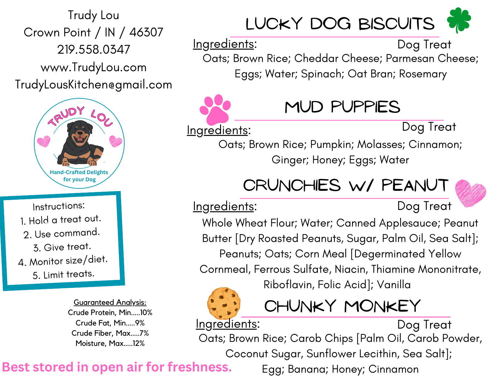 Make this holiday season extra sweet for your furry friend with Trudy Louβs 24-count Holiday Cookie Pack! This festive assortment features four tail-wagging flavors your pup will adore: